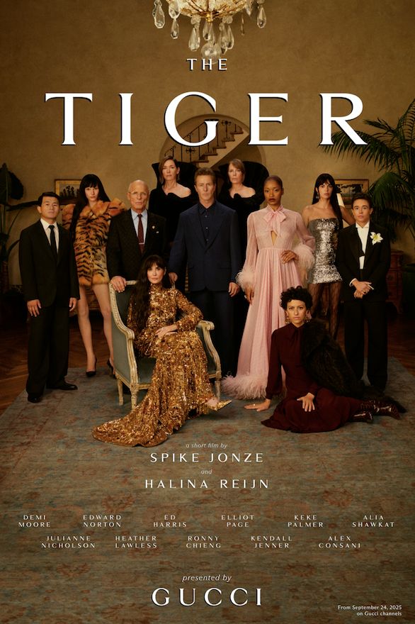 他摒弃传统秀场,以时装电影《The Tiger》(虎)取代发布会。影片由奥斯卡导演Spike Jonze与Halina Reijn执导,黛米·摩尔主演,讲述虚构的 Gucci 家族在宴会中的权力博弈与人性暗涌。片中角色悉数身着Gucci 2026 春夏系列,让时装在戏剧冲突中被赋予鲜活灵魂,呈现极致代入感。