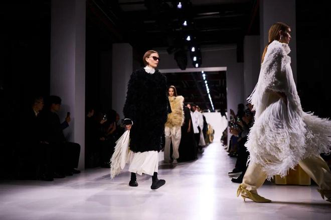 “着装悦己”置于系列的核心:从饰羽歌剧大衣与珠宝点缀的华丽造型,到无缝连体袜装演绎的新极简性感。男装亦以高雅质感融入透视紧身套装与礼服风格泳衣,在结构与材质的对话中,描绘现代生活的愉悦仪式感。