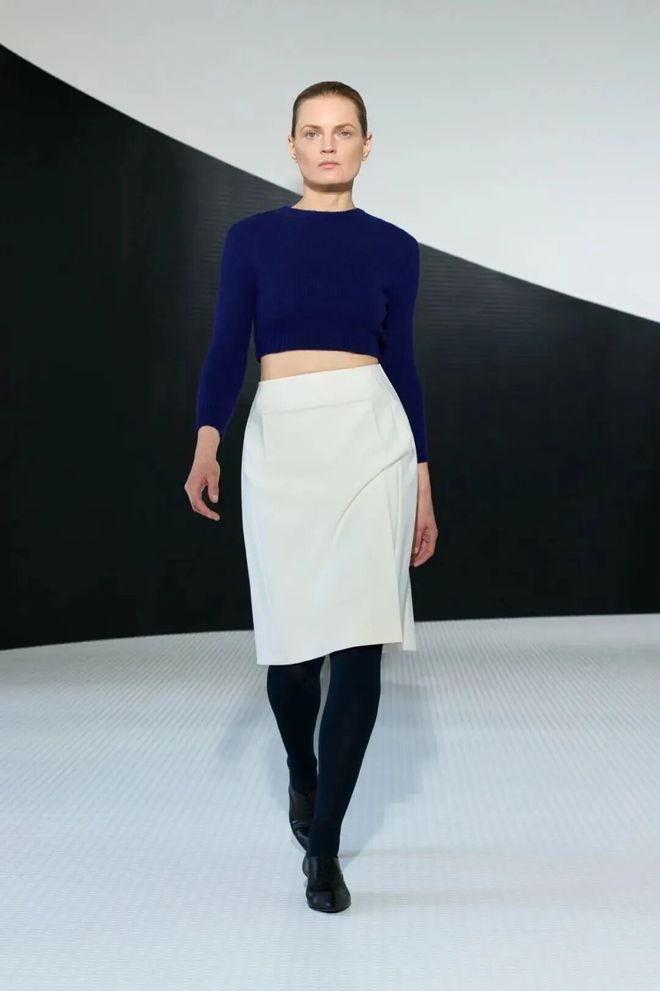 配饰作为细节注脚,方头鞋、镂空芭蕾鞋与全新 Pivot 手袋延续极简线条,却注入摩登实用性。JIL SANDER 在思辨与创意的拉扯中,完成了一次回望与重构——严肃的美学,亦不失玩味巧思。