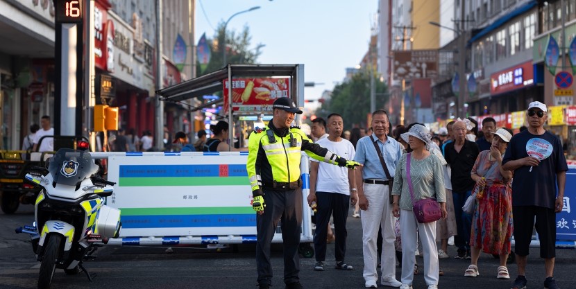 下午4点半,黑河市爱辉区邮政路的夜市摊主们正忙着支烤炉、摆摊位,黑河市公安局交警支队爱辉区大队的民警已全员到岗。“从下午5点开市到夜里10:30清场,每个路口的人流走向、每段人行道的通行状态,心里都得门清儿。”爱辉区交警大队副大队长谢立伟抬手轻拭额角汗水,对讲机里此起彼伏的点位汇报声,像跳动的脉搏般呼应着即将开启的夜市。